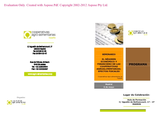 Cooperativas Agro-alimentarias de España ha organizado un seminario sobre "El régimen económico y financiero de las cooperativas agroalimentarias. Efectos fiscales", que tendrá lugar el próximo 6 de mayo en la sede de Madrid.